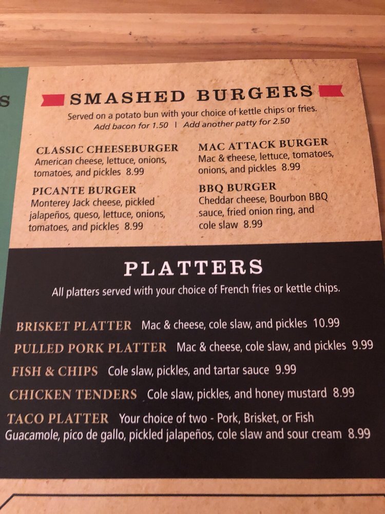 Kettle chips, brisket chili, queso, Monterey Jack cheese, jalapenos, pico de gallo and Alabama white sauce.