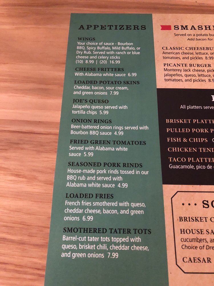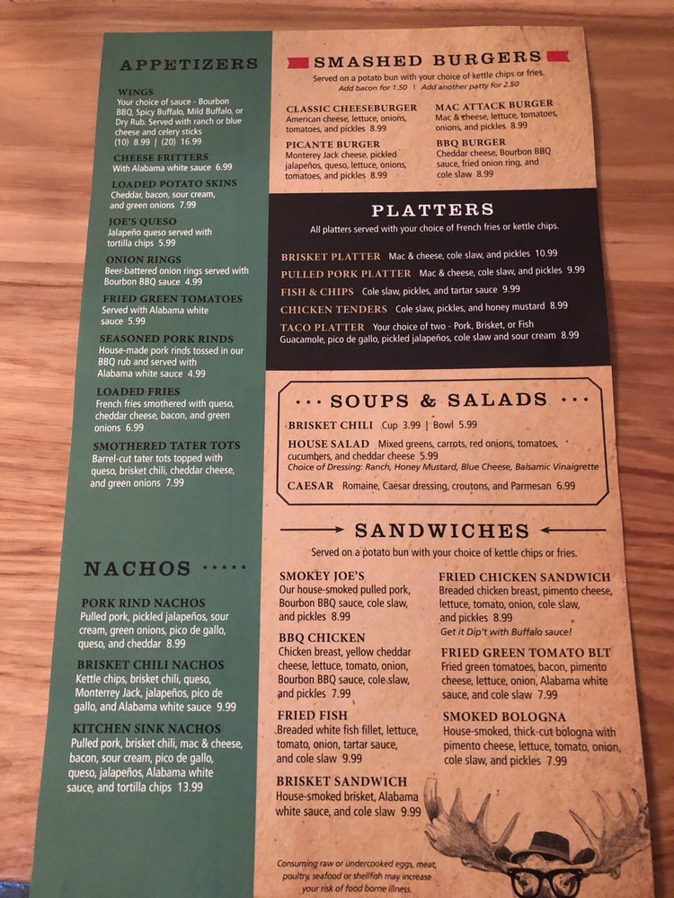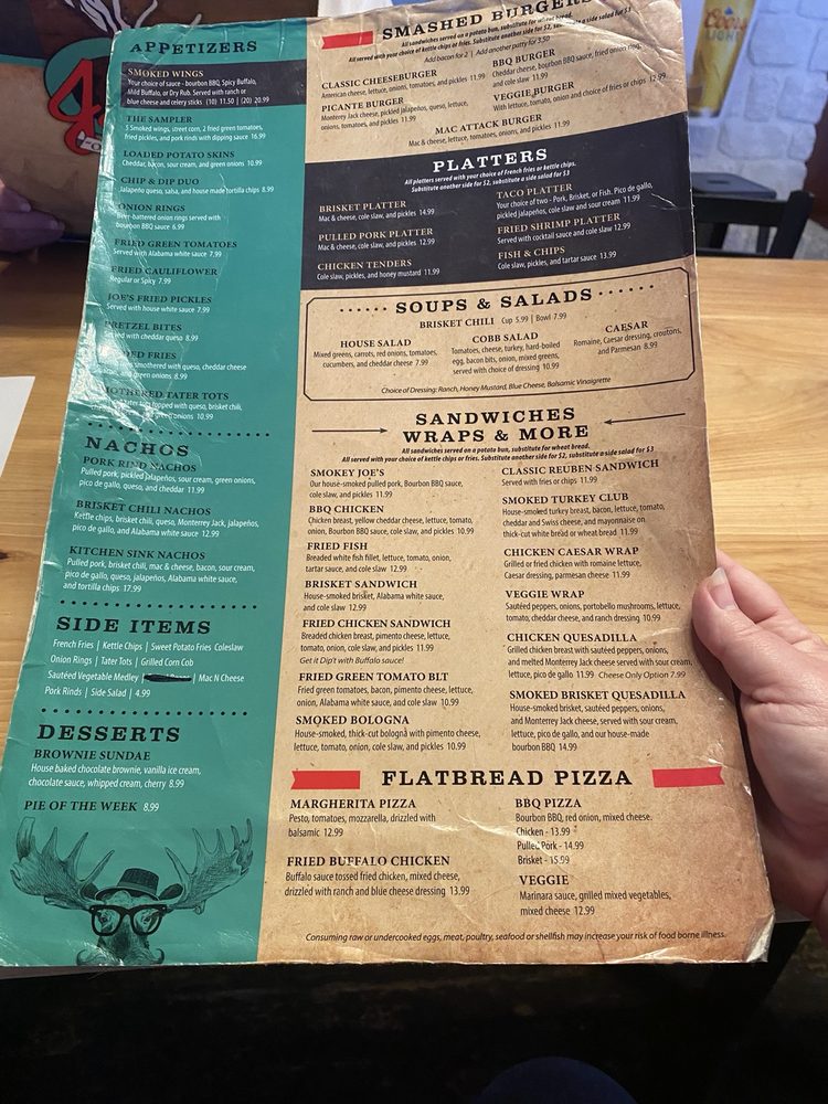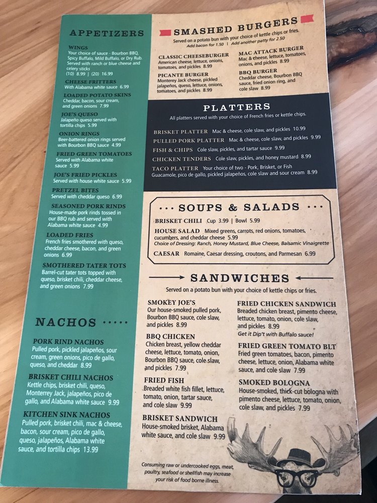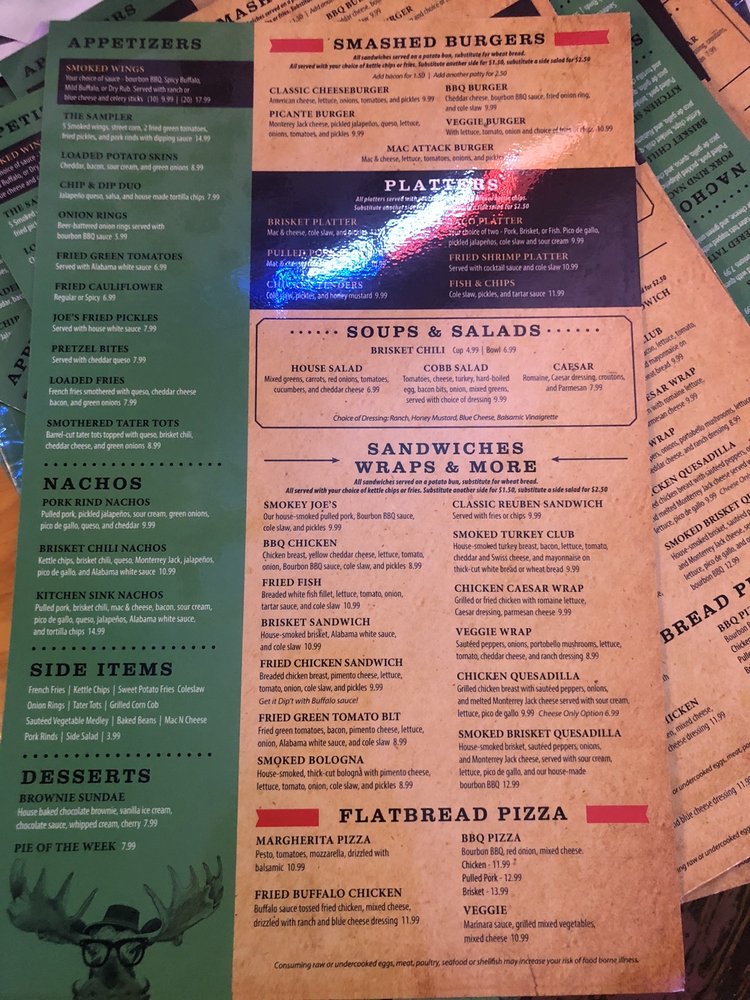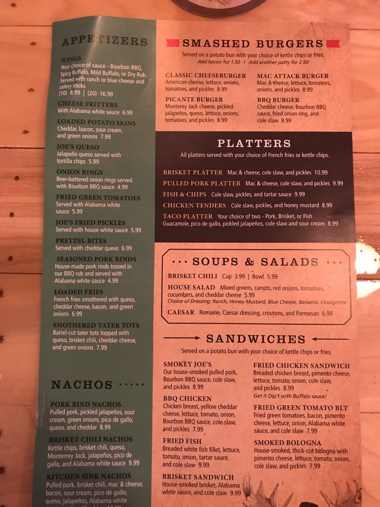 As you explore the menu, indulge in tempting appetizers like smoked wings and loaded potato skins, or dive into heartier dishes like the brisket platter and Smokey Joe's Sandwich. Most notable are the tasty portions that cater to every palate—ideal for grabbing bites while enjoying live music.
